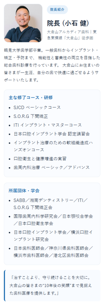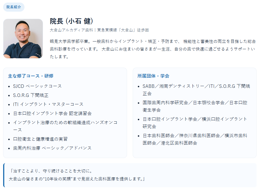 大倉山で信頼できる歯科医院をお探しの方は、ぜひ一度アルカディア歯科にご相談ください。